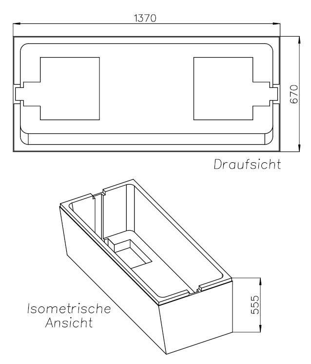 | FH05050130001 | FORMAT Tec Wannenträger SUPERIO UNO | 150 x 70 cm, 1 gerade und 1 schräge Seite, Trägerhöhe 55,5cm |
