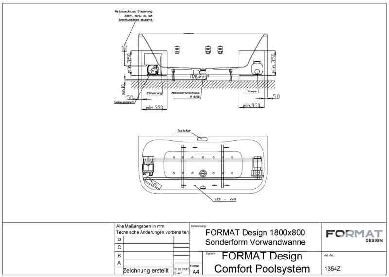 FO05080080001BLFORMAT Design Oval-Vorwand-Poolwanne180 x 80 cm, ComfortPlus, Rückendüsen links, weiß