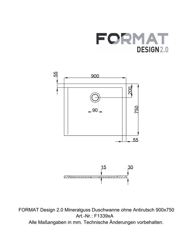| FO05080150001 | FORMAT Design 2.0 Duschwanne Mineralguss | 90 x 75 x 3 cm, weiß, ohne Antirutsch |