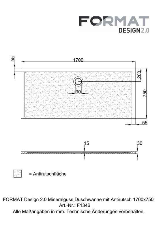 | FO05080170008 | FORMAT Design 2.0 Duschwanne Mineralguss | 170 x 75 x 3 cm, weiß, mit Antirutsch |