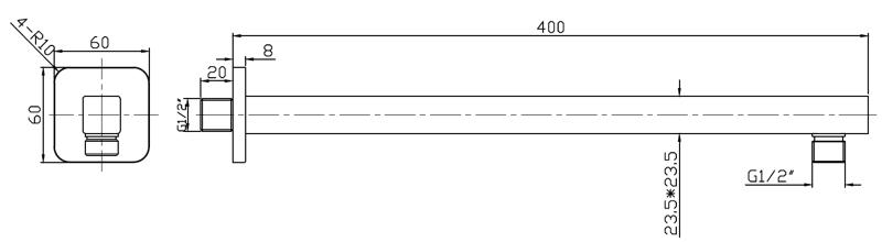 FO10490070201FORMAT Brausearm400 mm, Messing verchromt, eckig, Anschlussgewinde 1/2"