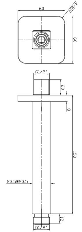 | FO10490090101 | FORMAT Deckenanbindung | 150 mm, Messing verchromt, eckig, Anschlussgewinde 1/2" |