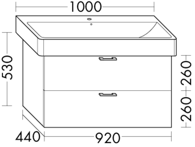 FO18100290003FORMAT Design Waschtisch-Unterschrank WXGU920x530x440mm, 1 Schublade/1 Auszug, weiß matt