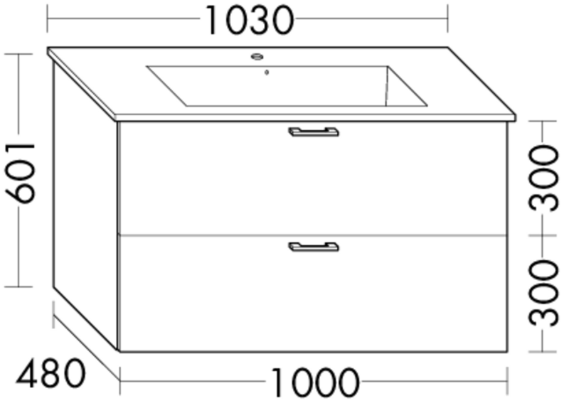 FOWVFH100F1278FORMAT Design Waschtisch-Unterschrank WVFH1000x480x601mm, 1 Schublade/1 Auszug, weiß matt