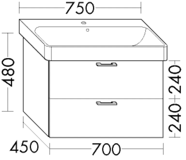 | FOWVGA070F2112 | FORMAT Design Waschtisch-Unterschrank WVGA | 700x450x480mm, 1 Schublade/1 Auszug, basaltgrau matt |