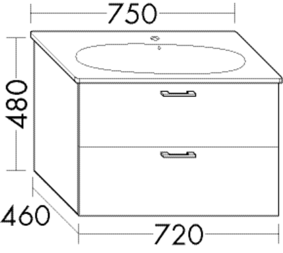 FOWVVJ072F1278FORMAT Design Waschtisch-Unterschrank WVVJ720x460x480mm, 1 Schublade/1 Auszug, weiß matt