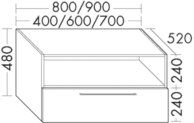 600 x 480 x 520 mm, anthrazit Hochglanz, 1 Fach, 1 Auszug