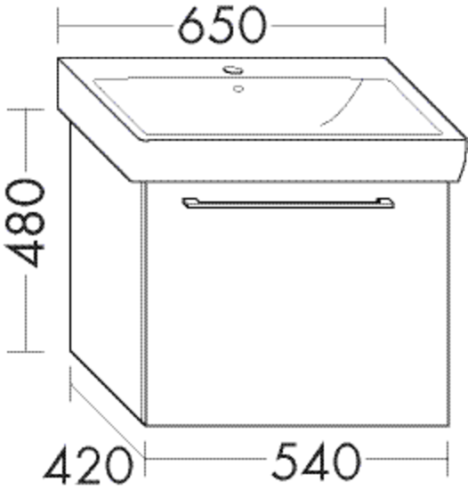 | FOWVYA054F0508 | FORMAT Pro Waschtisch-Unterschrank | 540 x 420 x 480 mm, weiß hochglänzend, 1 Auszug |