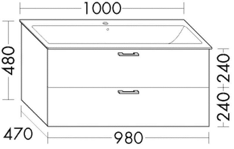 | FOWWCQ098F2112 | FORMAT Design Waschtisch-Unterschrank WWCQ | 980x480x470mm, 1 Schublade/1 Auszug, basaltgrau matt |