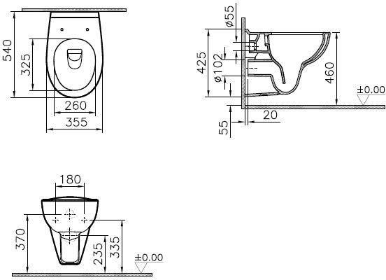 FO01060090001FORMAT Plus Wand-Tiefspülerweiß, 35,5x54cm, spülrandlos, rollstuhlgerecht, Sitzhöhe 48cm